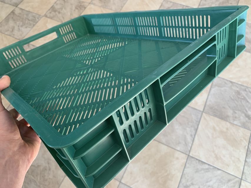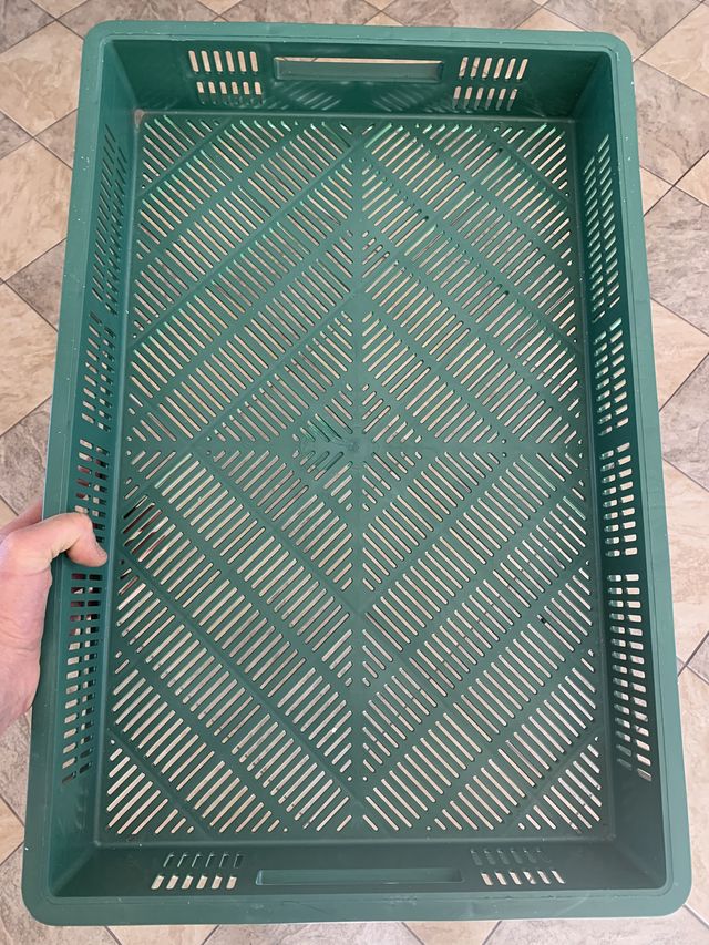 Skrzynka którą otrzymaliśmy, jest koloru zielonego, ładowność do 10 kg, a jej wymiary to 60x40x11 (cm). Pod względem technicznym produkt wydaję się trwały i solidny. Pojemnik nie jest za wysoki, przez co okazał się praktyczny, a dzięki wyciętym uchwytom po obu strona jest poręczny w użyciu. Wykorzystać można go jak i w domu, ogrodzie, piwnicy czy bagażniku samochodu. Posiada ażurowe wycięcia dla lepszej wentylacji, przy czym zaprojektowany jest tak, aby można było piętrować jeden pojemnik na drugim. Produkt można zamówić z firmy Rolmet, strona producenta oferuje różne wielkości, kolory czy ładowność skrzynek.